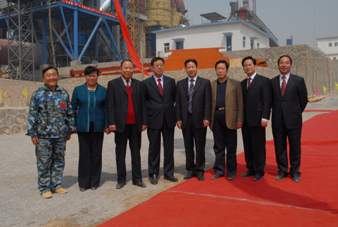 18.左起:燕赵水泥项目总指挥张谦之、工业和信息化部处长高秀英、河北省建筑材料联合会会长葛旭东、鹿泉市委书记安树国、鹿泉市政府市长郝竹山、鹿泉市人大主任安明法、鹿泉市委常委副市长周永会、燕赵水泥有限公司董事长总经理高洪波